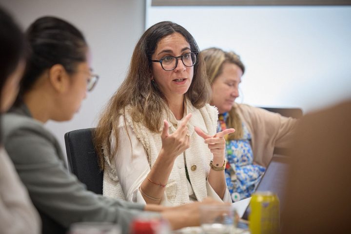 La tercera parada del día fue en el Real Instituto Elcano, donde los Líderes conversaron sobre algunos de los principales retos en energía y clima que afrontan España y la Unión Europea con sus investigadores Ignacio Urbasos y Lara Lázaro.