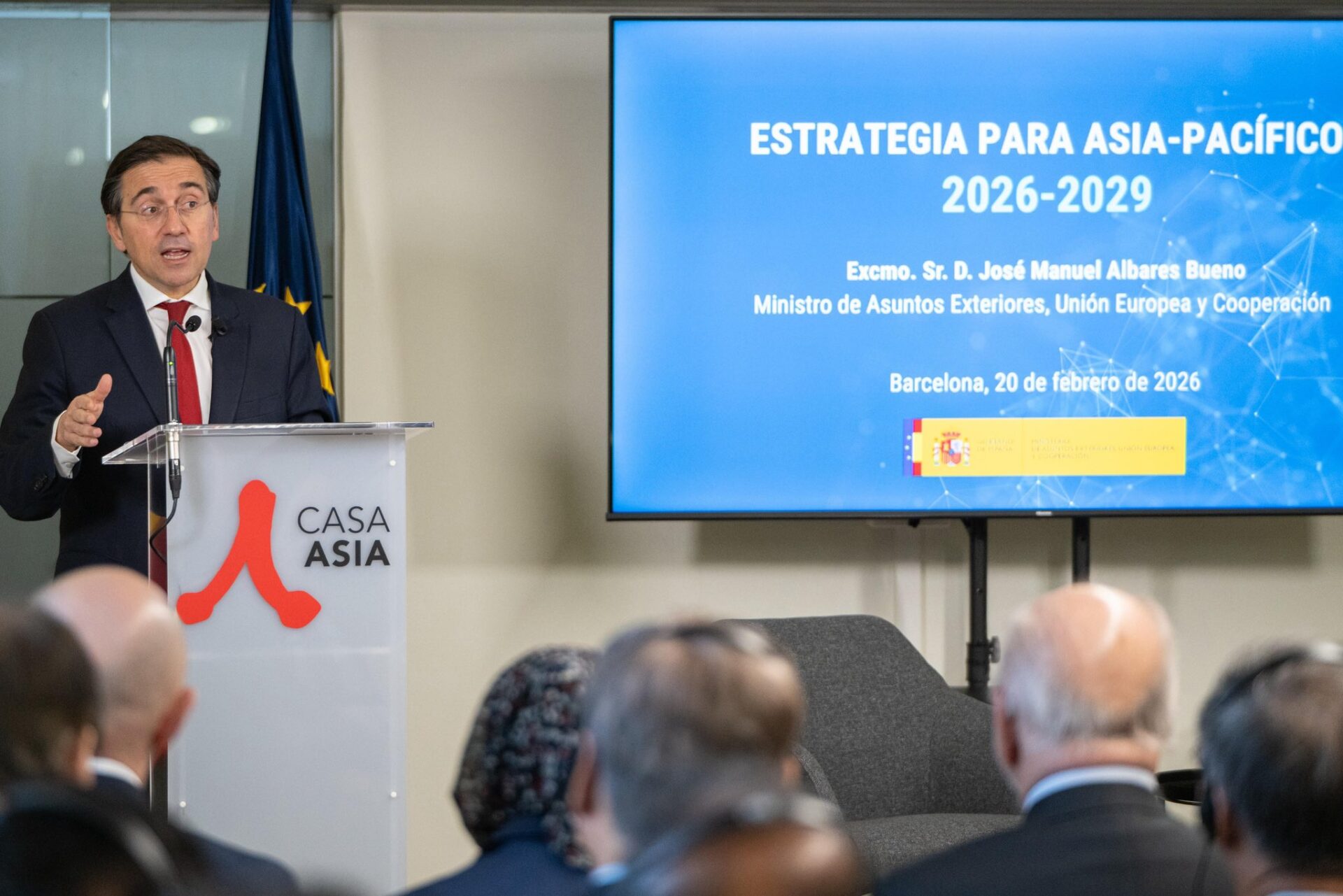 El ministro de Asuntos Exteriores, Unión Europea y Cooperación, José Manuel Albares, presentó recientemente la nueva Estrategia para Asia-Pacífico 2026-2029 en la sede de Casa Asia en Barcelona.