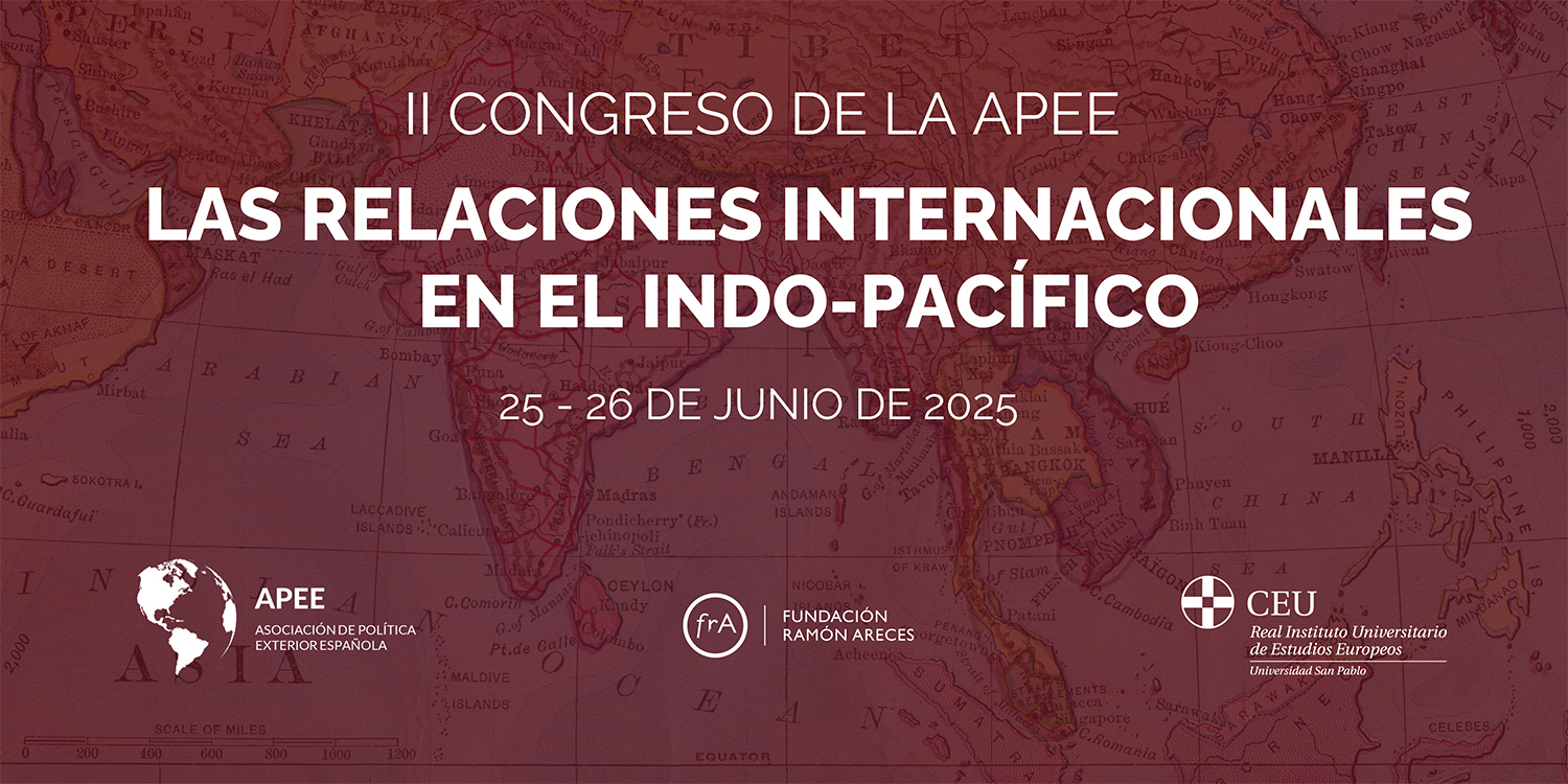 El Real Instituto Universitario de Estudios Europeos de la Universidad CEU San Pablo, la Asociación de Política Exterior Española (APEE) y la Fundación Ramón Areces celebran los días 25 y 26 de junio el II Congreso de la APEE, titulado «Las Relaciones Internacionales en el Indo-Pacífico».
